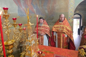 Богослужебные песнопения исполнил архиерейский хор. Вместе с архиереем и духовенством в храме молилось множество прихожан и паломников. По сугубой ектении Господу Богу была вознесена молитва о Святой Руси. Перед причастием мирян протоиерей Димитрий Морозов произнёс проповедь.