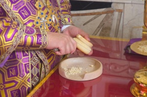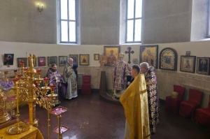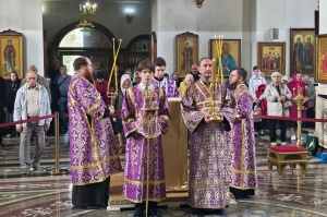 По окончании Литургии её участники совершили славление образу Животворящего Креста Господня.