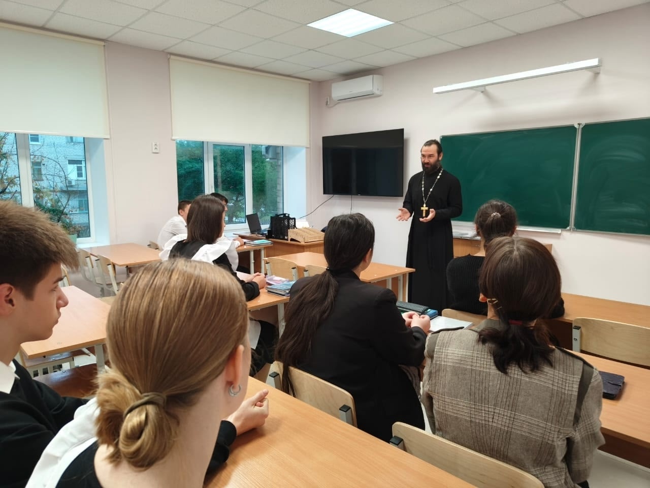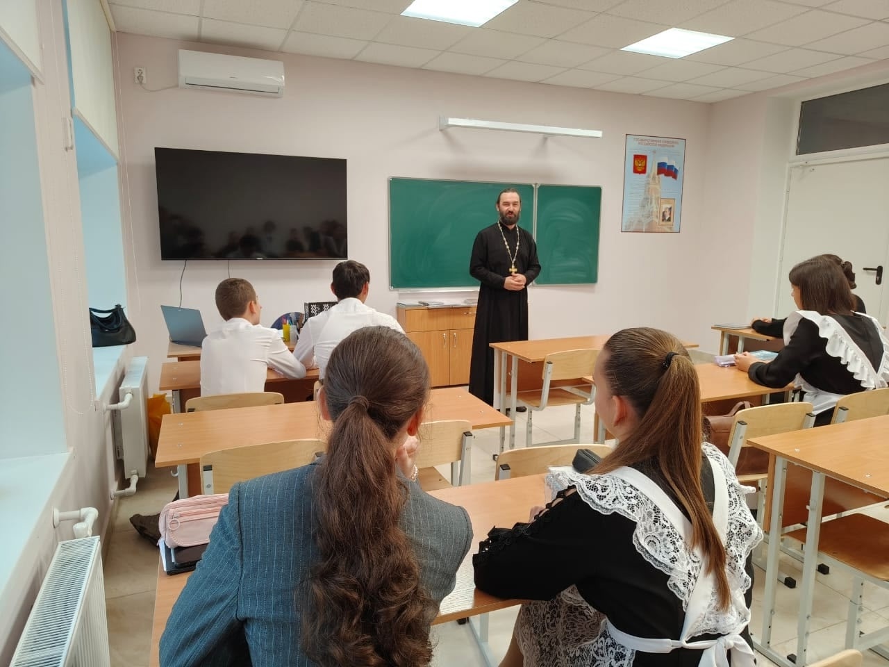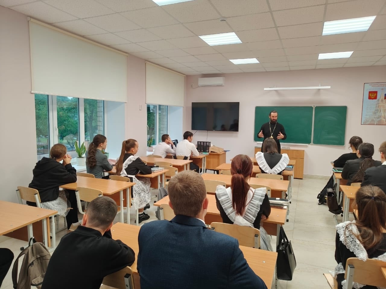 30 сентября в МОУ СОШ№1 города Зеленокумска состоялась встреча благочинного Зеленокумского округа, настоятеля храма Первоверховных апостолов Петра и Павла Георгиевской епархии протоиерея Романа Квитченко с учащимися 7-10 классов.