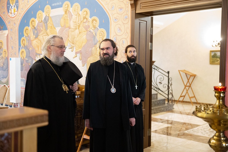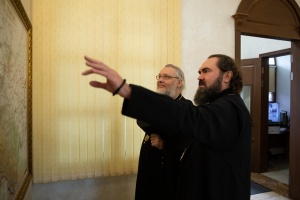 Перед началом работы Архиерейского совета архиепископ Пятигорский и Черкесский Феофилакт провел ознакомительную экскурсию по Епархиальному дому для архиереев и духовенства Ставропольской митрополии.