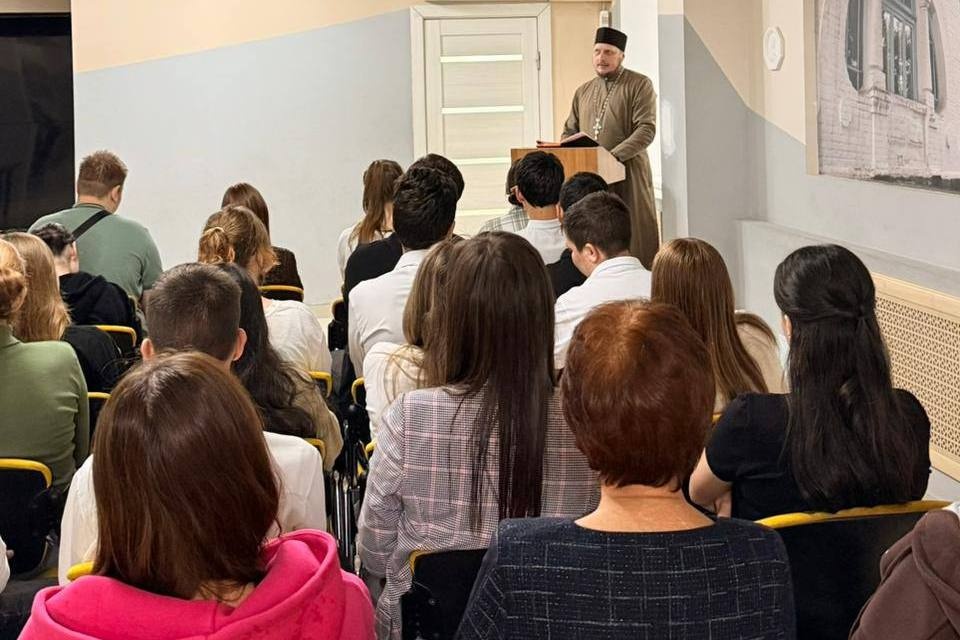 10 октября в Буденновском филиале ЧПОУ «Колледж Современная школа бизнеса» состоялась встреча студентов с настоятелем студенческого храма во имя свв. равноапостольных Кирилла и Мефодия протоиереем Димитрием Морозовым.
