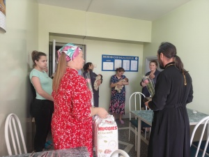 14 октября руководитель Миссионерского отдела Георгиевской епархии, настоятель Петропавловского храма города Зеленокумска протоиерей Роман Квитченко и матушка Анна Квитченко из числа Совета матушек Георгиевской епархии посетили родильное и гинекологическое отделение ГБУЗ СК «Советская районная больница». Священник всех благословил и поздравил собравшихся с Покровом Пресвятой Богородицы. Родильницам пожелал скорейшего восстановления и здоровья детям, беременным — благополучного родоразрешения, а медицинским работникам — помощи Божией в их богоугодном деле. Затем отец Роман передал розы от епископа Георгиевского и Прасковейского Николая, подарки от приходов Зеленокумского благочиния для всех женщин — одноразовые подгузники, иконы Божией Матери, именуемой Млекопитательница, и миссионерские буклеты.